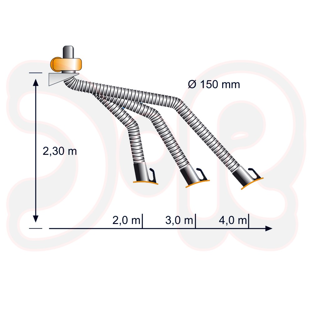- Absaugarm flexibel in Schlauchausführung 2 m, Ø 150 mm