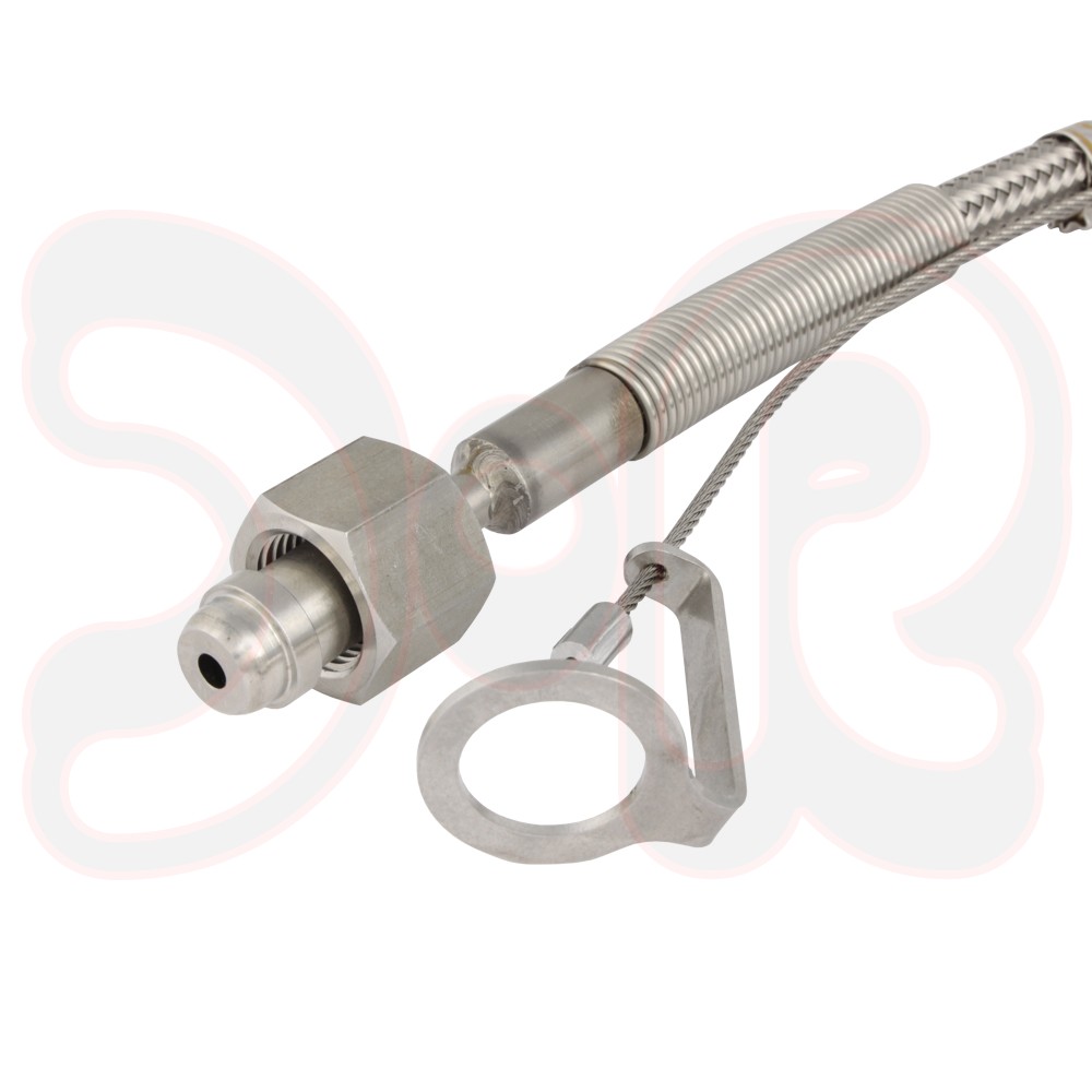 Hochdruckschlauchleitung für Sauerstoff 300 bar, Edelstahl mit Sicherheitsfangseil, Länge 1,5 m, VE= 1 Stück