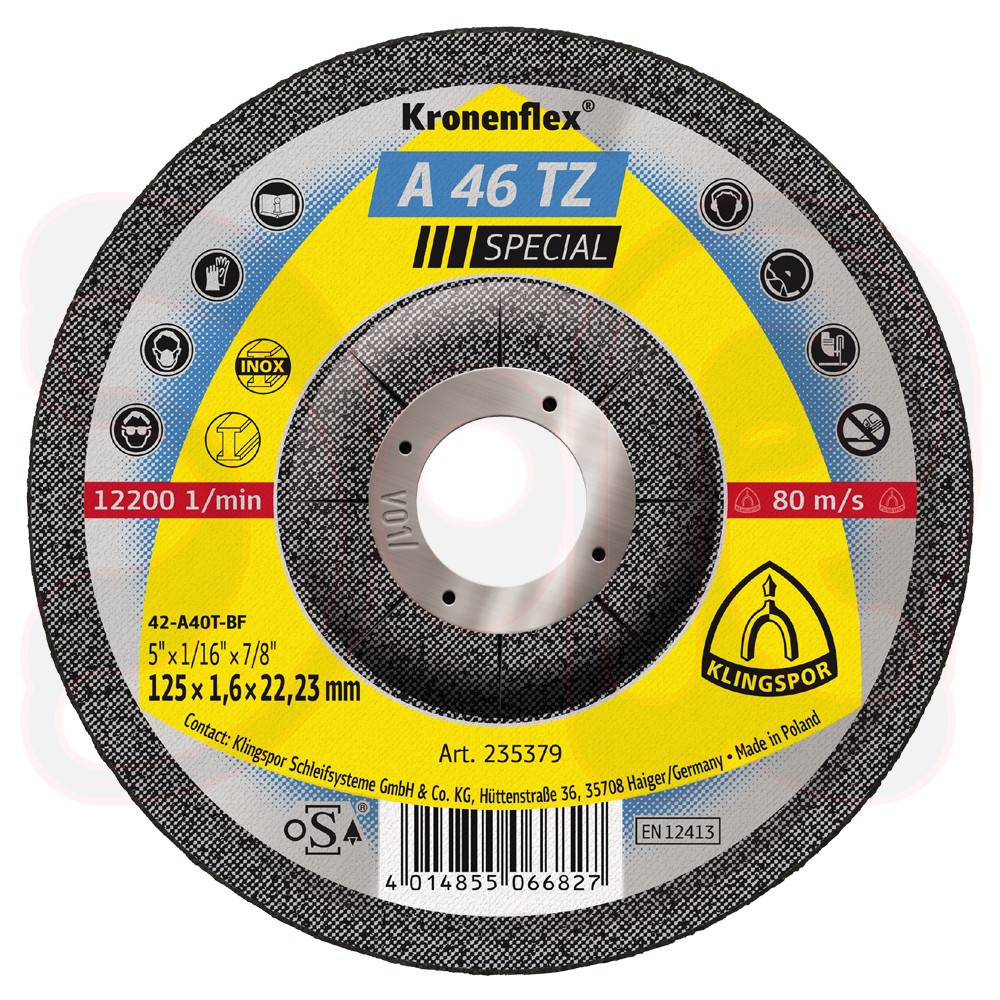 Wenn es um die Bearbeitung von Edelstahl geht, ist die Trennscheibe A 46 TZ eine hervorragende Wahl. Diese Scheibe der Qualitätsklasse Special ist ein Hochleistungsprodukt für Spezialanwendungen, das dank seines synthetisch hergestellten Schleifkorns ein exzellentes Schneidverhalten bietet. Künstliche Schleifkornarten zeigen nur einen geringen Verschleiß und homogene Ergebnisse. Das schätzt der professionelle Anwender ebenso wie der Hobby-Heimwerker. Klingspor setzt auch bei den Harzen und Füllstoffen ausschließlich auf hochwertige Rohstoffe. Damit erzielt der Anwender in der täglichen Praxis grundsätzlich die besten Ergebnisse.