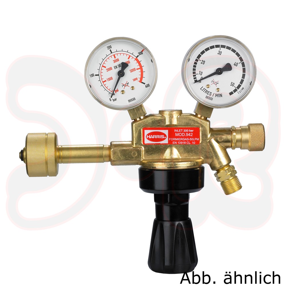 Tritt Gas in die Eintritts- (Hochdruck-) Kammer, wird der Eingangsdruck auf dem Eingangsmanometer angezeigt. Wird der Druckeinstellknopf gegen den Uhrzeigersinn bis zum Anschlag gedreht, verhindert das Absperrventil und der Ventilsitz zwischen Eintritts- und Ausgangs- (Niederdruck-) Kammer, dass Gas fließt. Ein Filter im Einlass des Absperrventils und am Ventilsitz entfernt Feinstaub aus dem Gasfluss und schützt damit den Ventilsitz. Durch Drehen des Einstellknopfs im Uhrzeigersinn wird die Stellschraube gegen den Boden der Stellfeder gedrückt, was dazu führt, dass die Stellfeder komprimiert wird. Die Kraft der zusammengedrückten Stellfeder wiederum bewirkt, dass die Membran sich verbiegt und gegen das Absperrventil drückt. Dadurch öffnet sich der Druckregler und lässt das Gas aus der Eintrittskammer zur Ausgangskammer des Reglers fließen. Sobald das Gas in die Ausgangskammer fließt, bildet sich Druck und eine Gegenkraft entsteht (gegen die Stellfeder) auf der Membran. Dieser Druck wird entsprechend auf dem Ausgangsnanometer angezeigt. Wenn der Druck ausreichend und der Spannung der Stellfeder entgegenwirkt, wird die Membran vom Ventilsitz gedrückt wodurch das Regelventil geschlossen wird. Auf diese Weise wird der Druck in der Ausgangskammer gesteuert und durch die Intensität der Spannung auf die Stellfeder reguliert. Der Druck kann durch Drehen des Einstellknopfs eingestellt werden, bis der gewünschte Druck auf dem Ausgangsmanometer angezeigt wird. Wenn Gas aus der Ausgangskammer abgegeben wird, verringert sich die Gasmenge und es entsteht ein Druckabbau in der Kammer. In diesem Fall bewirkt die Federspannung erneut, dass die Membran das Absperrventil aufdrückt, so dass zusätzliches Gas in die Ausgangskammer fließt. (Quelle: Harris)