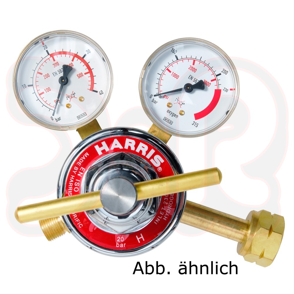 Tritt Gas in die Eintritts- (Hochdruck-) Kammer, wird der Eingangsdruck auf dem Eingangsmanometer angezeigt. Wird der Druckeinstellknopf gegen den Uhrzeigersinn bis zum Anschlag gedreht, verhindert das Absperrventil und der Ventilsitz zwischen Eintritts- und Ausgangs- (Niederdruck-) Kammer, dass Gas fließt. Ein Filter im Einlass des Absperrventils und am Ventilsitz entfernt Feinstaub aus dem Gasfluss und schützt damit den Ventilsitz. Durch Drehen des Einstellknopfs im Uhrzeigersinn wird die Stellschraube gegen den Boden der Stellfeder gedrückt, was dazu führt, dass die Stellfeder komprimiert wird. Die Kraft der zusammengedrückten Stellfeder wiederum bewirkt, dass die Membran sich verbiegt und gegen das Absperrventil drückt. Dadurch öffnet sich der Druckregler und lässt das Gas aus der Eintrittskammer zur Ausgangskammer des Reglers fließen. Sobald das Gas in die Ausgangskammer fließt, bildet sich Druck und eine Gegenkraft entsteht (gegen die Stellfeder) auf der Membran. Dieser Druck wird entsprechend auf dem Ausgangsnanometer angezeigt. Wenn der Druck ausreichend und der Spannung der Stellfeder entgegenwirkt, wird die Membran vom Ventilsitz gedrückt wodurch das Regelventil geschlossen wird. Auf diese Weise wird der Druck in der Ausgangskammer gesteuert und durch die Intensität der Spannung auf die Stellfeder reguliert. Der Druck kann durch Drehen des Einstellknopfs eingestellt werden, bis der gewünschte Druck auf dem Ausgangsmanometer angezeigt wird. Wenn Gas aus der Ausgangskammer abgegeben wird, verringert sich die Gasmenge und es entsteht ein Druckabbau in der Kammer. In diesem Fall bewirkt die Federspannung erneut, dass die Membran das Absperrventil aufdrückt, so dass zusätzliches Gas in die Ausgangskammer fließt. (Quelle: Harris)