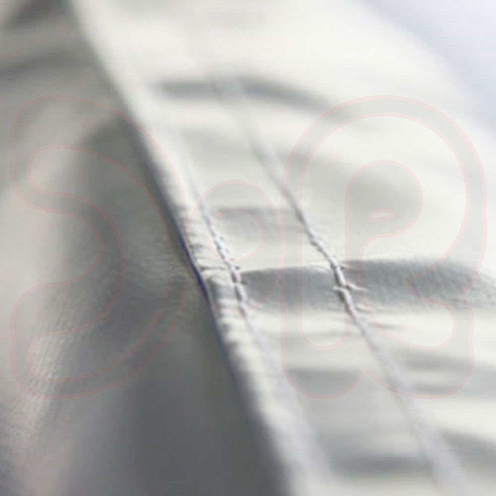 Das Schweißzelt ist in der Mitte geteilt, aus beidseitig PVC-beschichtetem Gewebe (ca. 600 g/m²) mit doppelten Sicherheitsnähten. Das Zelt ist schwer entflammbar nach DIN 4102 B1, in der Standardfarbe weiß, weitere Farben auf Anfrage verfügbar.
